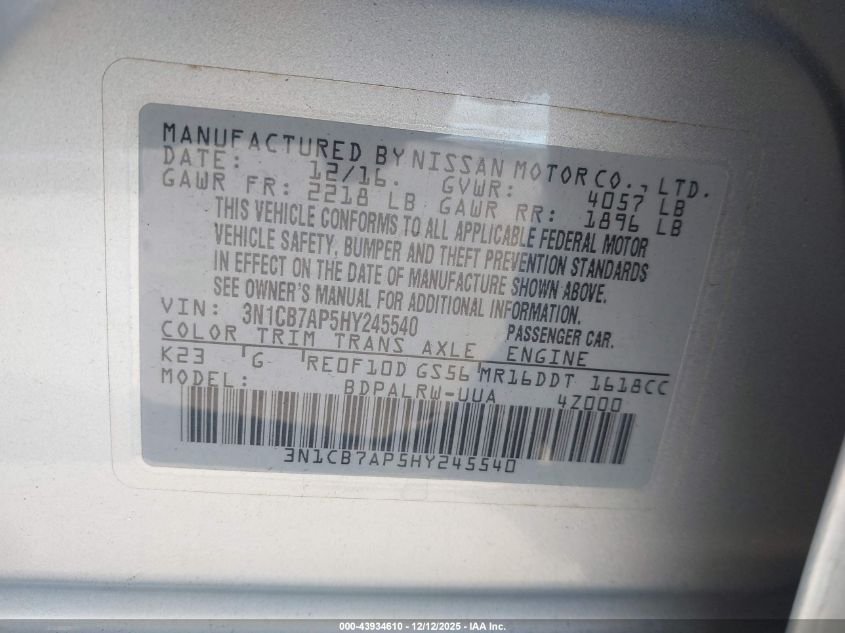2017 NISSAN SENTRA SR TURBO